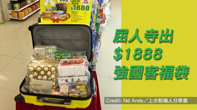 不過好彩,有先見之明嘅屈人寺就喺呢個時候出招救港,仲唔使用暴力!佢哋推出咗一個價值$1888嘅強國客福袋,又牙膏又mask屎又金莎呀咁,完全啱晒強國人嘅口味!仲有,平時日本人啲福袋係用紙袋或者布袋裝住㗎嘛,一啲都唔方便,但屈人寺就細心得多,佢哋包埋個靚靚喼,咁就方便得多啦,一拖就得。