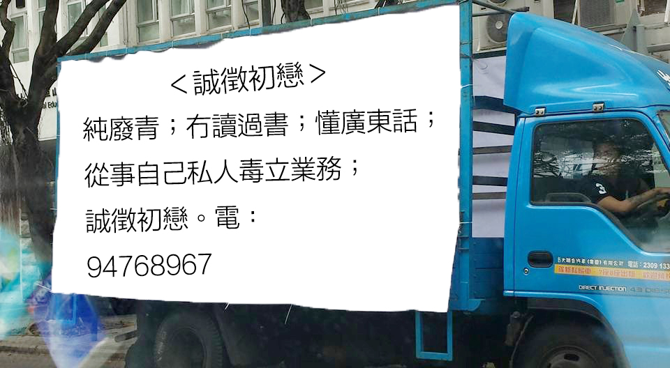 畀你諗到貼街招呢個玩法,真係好有創意喎,喂啲女畀你溝晒啦,咁點算先? 今日有讀者喺牛頭角一個巴士站見到呢張感人肺腑嘅告示,睇嚟呢位哥仔都似係新香港人,你咪話呀,嚟香港讀書交全費好貴下㗎!分分鐘係富二代呀喂,你睇已經有個疑似真命天女抆咗佢電話喇。 毛毛都感受到佢嗰份激情呀! 我都決定好似佢咁主動啲搵女朋友,不過就咁貼街招驚得好少人睇到,一於重本少少咁樣: