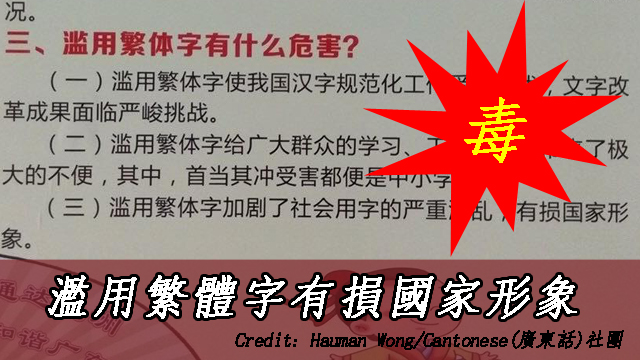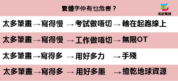 其實國家都係為咗大家嘅利益著想,先至唔畀你哋用咁多繁體字㗎咋,你估真係淨係因為怕你挑戰到文字改革、影響學習同損害國家形象咩?其實用繁體字仲有好多害處㗎: