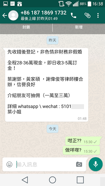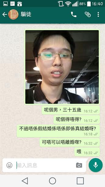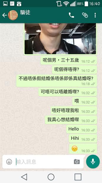 機會嚟喇飛雲,毛毛等咗咁多年,終於有人肯同我結婚喇!仲要主動搵我同有錢收㗎,唔通個天終於都鍾意返我? 首先毛毛收到呢個好吸引嘅message,成30萬現金,仲有謝超人睇住喎,咁咪畀到首期唔使再做廢青囉! 呢位小姐個icon仲要係有型又有品味嘅中銀1000蚊紙?。真係好想快啲認識佢呀! 之後......佢就冇再應過毛毛喇......