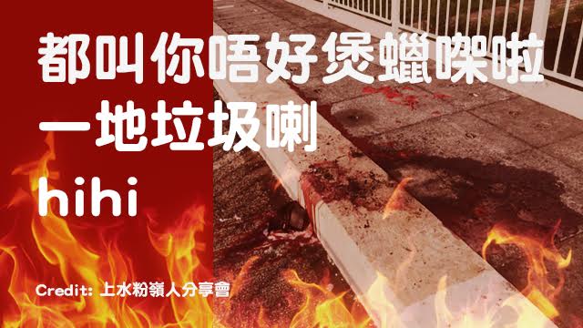 我都知你哋中秋節有街去好開心,毛毛冇葡葡喎,但係你班hihi都唔使留低一堆勝利的痕跡㗎,剷死人咩想! 中秋啱啱過,等毛毛帶大家睇下各區嘅情況吖。 馬鞍山沙灘: 仲有上水: 你班友以為煲蠟好型咩,玩完蠟燭開心完就返屋企瞓,難為班掃地阿姐阿叔同你哋剷到天光呀!真正嘅型唔係自己話嘅,識得諗埋人哋,咁就真係型喇。 嗱大丈夫出得嚟玩,下次記得掃走自己啲圾垃喇!