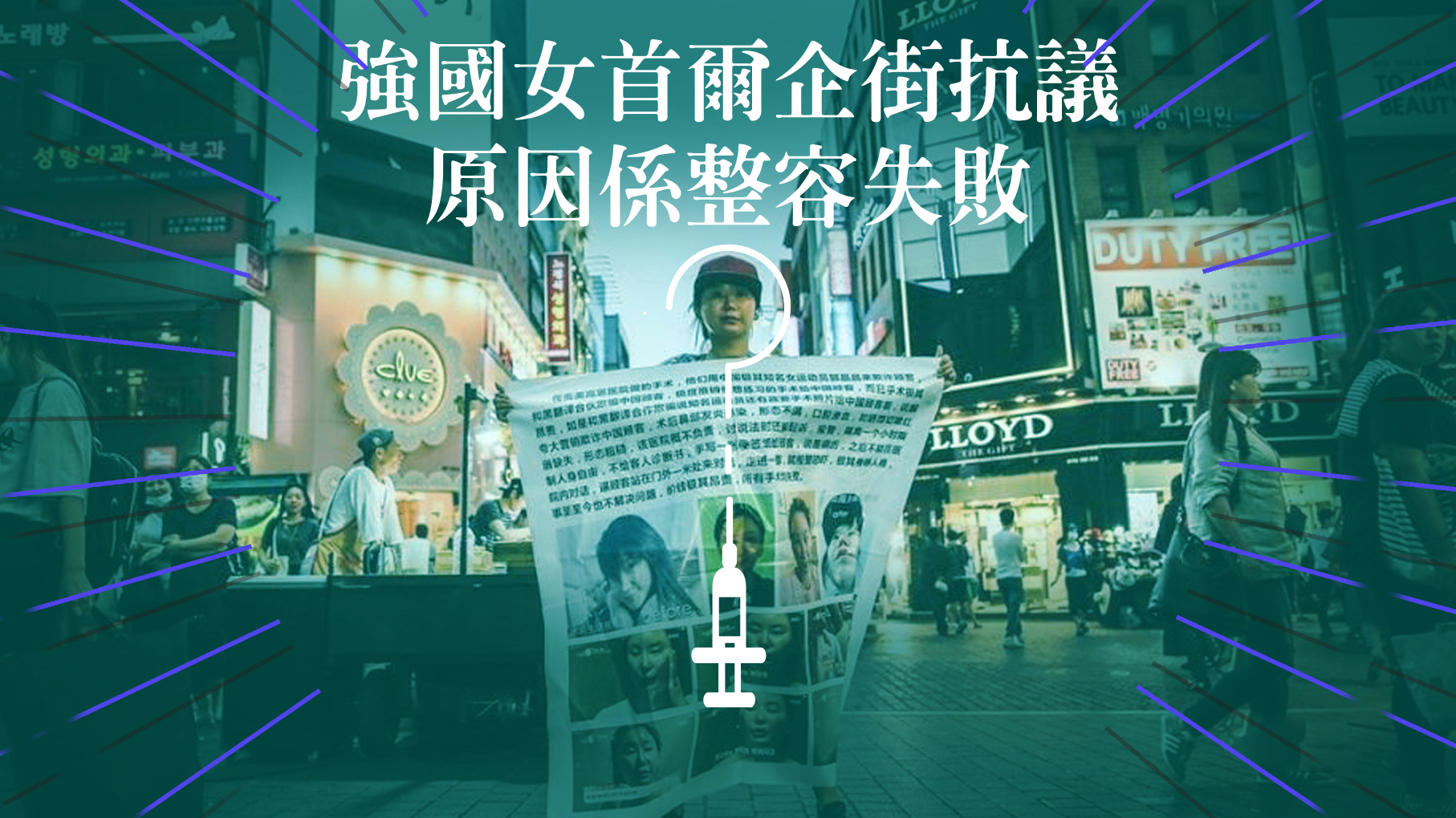 日日打開報紙雜誌都話有人整容,好似係。而最近都有班強國妹豬sss(?)去咗韓國整容,不過佢哋就好似唔係幾滿意咁,所以整咗一堆banner呀單張呀咁,拉大隊齊齊去首爾明洞嗰度企街,我指企喺條街度集體抗議,投訴嗰啲涼薄、刻毒嘅中介同整容醫院!聽講佢哋仲唔係第一次去抗議?......