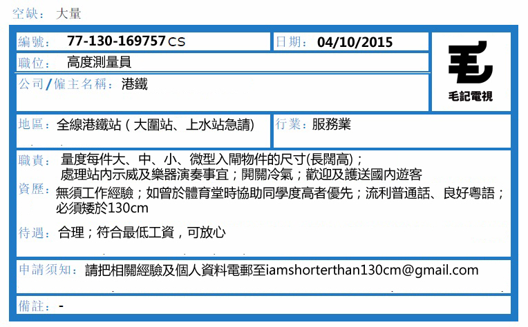 每份工都有每份工嘅基本要求,如果裝修師傅要識度尺寸、波士要識度數、港鐵職員應該就要識度高嘞。