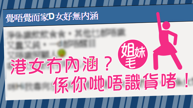 今日毛毛豬上高登巡視嘅時候,見到有個藍絲開Post話而家香港啲女仔冇內涵,又乜又物,真係一句撻著咗毛毛豬我囉!
