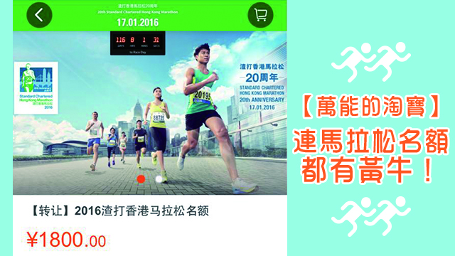 淘寶係一個充滿奇蹟同驚喜嘅地方。當佢連香港渣打馬拉松嘅參賽名額都有得買嘅時候,除了恭喜,我都不知說什麼好了。
