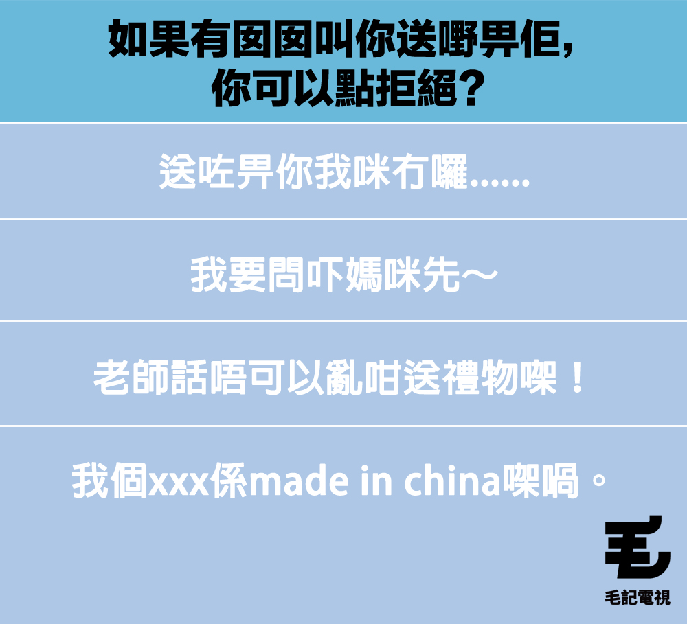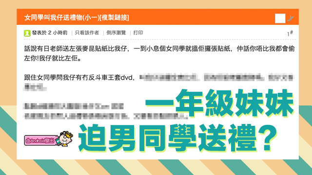 學專家的神話齋,有奶便是娘娘,不過其實只要唔係男人,都有資格做娘娘㗎喇~而想氹娘娘開心嘅話,無非都係讚下佢、送下禮㗎啫。最近就有個阿媽發現自己個仔都開始送禮畀囡囡,聽講仲係囡囡開到聲話要?,搞到佢勁嬲豬呀,不過重點係,佢個仔先讀緊一年班咋!