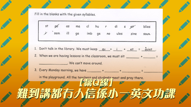 毛毛不嬲都話自己英文唔好,輸晒喺地平線上㗎喇,真係估都估唔到,而家啲英文功課會難成咁樣樣。有網民喺一個畀家長討論小一功課嘅FB group入面,見到呢份功課,一些牙出嚟,唔少人見到都話難到黐Q線!留意返,係小一功課咋!
