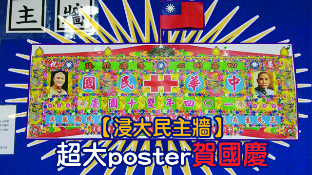 唔係呀唔係呀,呢張係明張目膽咁恭賀中華民國民國104年雙十節嘅poster呀!上面仲有國父孫中山先生同蔣總統張相?!聽講每年浸大都會有學生貼poster祝賀雙十節嘅,而今年呢張就特別靚~