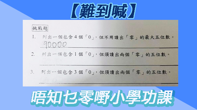 繼呢份將英文用數學撈埋再撈埋嘅小一功課之後,網上又出現咗一份連健吾都話唔識做嘅小學數學功課。