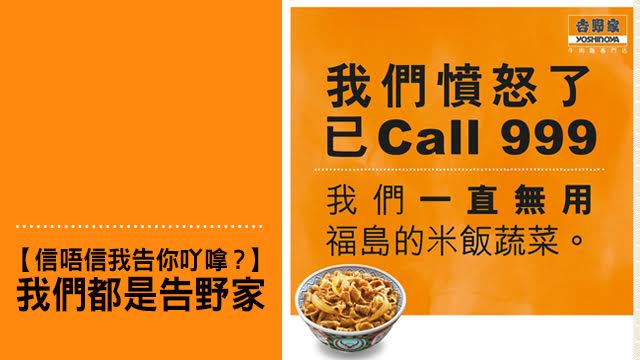 話說早兩日告野家畀人屈佢(應該係)用福島食材,佢哋個Eric Chan於是喺Fb Post咗張咁嘅憤怒澄清圖,話自己用嘅米唔係福島米,仲打埋999申冤?!老老竇竇,許Sir最近忙住Delete留言,鬼得閒理你咩?之不過聽講呢個舉動已經激發起其他香港人嘅投訴魂,齊齊作出以下控訴!