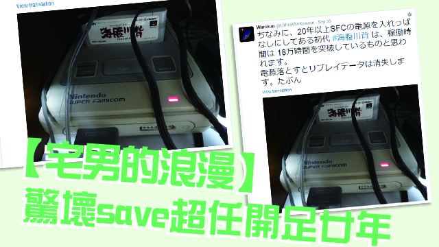 毛毛自細都成日睇東洋愛情動作片,所以日文都大概明少少咁啦。呢個宅男話其實超任本身係有嚿電池用嚟save game嘅,但因為佢部機嚿電池壞咗,佢驚陀衰家,連個save嘅功能都會壞埋,咁就會前功盡費㗎啦嘛,咪惟有一直開住部機囉!佢仲話部機已經開咗20年,即係差唔多18萬個小時喇!