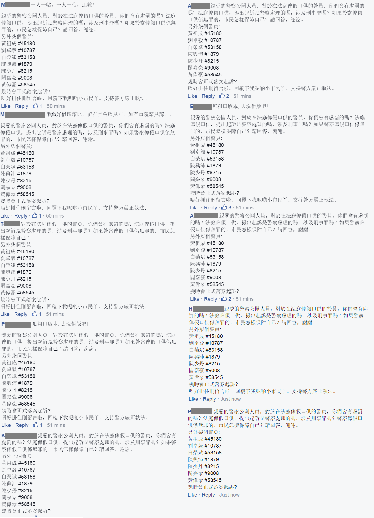 全賴各位市民鍥而不捨嘅努力,日日夜夜咁喺慈母個facebook page度留cm,暗角七警終於畀人拉喇,哇你都有今日喇! 就喺上年嘅今日,大台拍下咗驚心動魄嘅呢一幕,有人話係拳打腳踢,有人話睇唔到睇唔到。 問咗咁耐,佢哋今日終於都畀人告喇!!!!!!七警已經被正式落案起訴傷人罪,有意圖導致他人身體受嚴重傷害,仲有普通襲擊罪,估計下星期一提堂喇,有請小鳳姐!!
