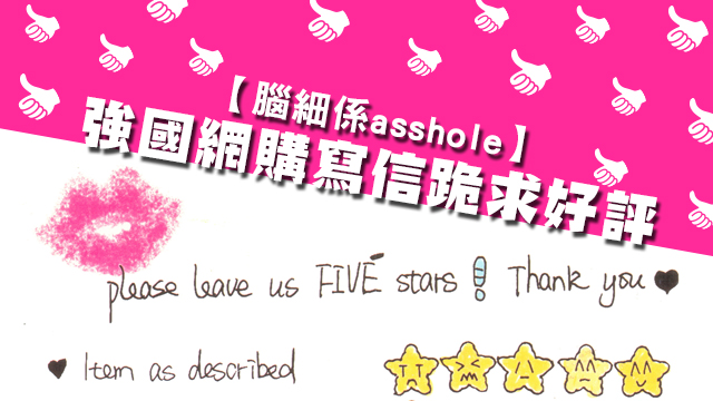 嗱,呢個強國網購店主就靚叻醒喇,深明客仔受軟唔受硬嘅硬道理,寄貨畀客嘅時候就附上一封信,用真誠真心真情去打動客仔,同客仔講:「如果你畀少過3粒星或者畀負評我,我會畀腦細罰㗎」,成功搏得同情,仲再下一城講咗句「our boss is an asshole」,進一步引起共鳴!