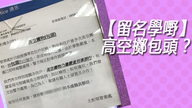 張通告就係話有住戶高空擲物,將「包頭」扔出街嘅。毛毛都一樣咁少見識呀,包尾就識……到底「包頭」係咩東東呢?