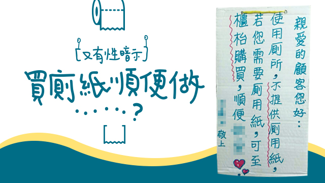 呀!好嬲呀!身為一個廁所,點可以冇廁紙㗎,冇廁紙都算啦,仲要寫塊告示叫人自己行去櫃枱買?而家即係明屈9我啫,真係嬲豬到吖!不過張告示睇到最後,毛毛原諒咗個廁所嚕,仲睇到毛毛紅都面埋~佢話買完廁紙順便......順便做......哎呀,毛毛都係講唔出,你哋自己睇啦~