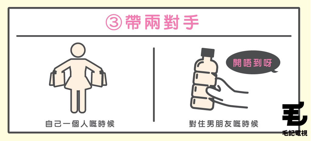 自己去shopping拎幾多袋戰利品都冇問題!但係遇男友我即刻變細力,連開支水都話開唔到,要佢幫我~