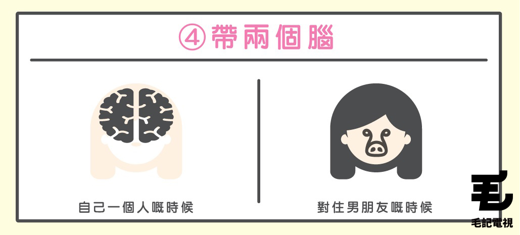 平時就醒醒目目,但對住男朋友仔就變到成個bb仔咁,淨係識問「真係㗎?典解嘅?好叻呀!」
