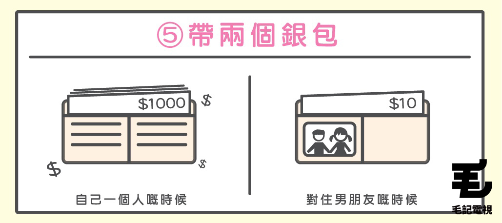 港男識帶兩個銀包出街,毛毛豬都一樣識!自己去shopping就帶個大銀包,放晒啲cash薯、信用卡同會員卡。同男友出街?唔使帶咁多嘢啦,銀包放張sweet sweet 即影即有咪夠囉~