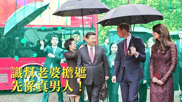 btw,習大大唔係好鍾意擔遮㗎咩,點解佢唔幫老婆擔遮嘅?
