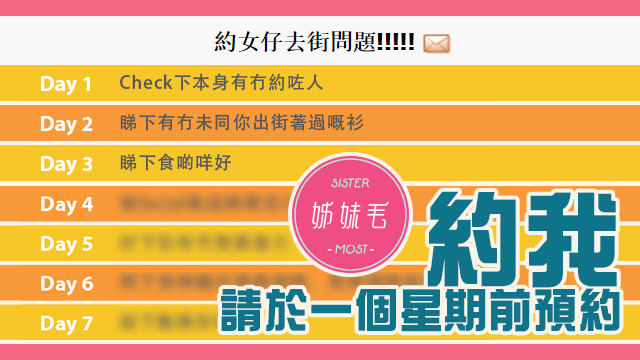 今日毛毛豬咁啱喺討論區見到有港男話約個女仔出街食飯,個女仔叫佢要於一個星期前預約,搞到佢好擔心個女仔是咪唔想同佢食飯呀!Come on,傻豬仔嚟嘅,而家係約女仔呀,唔係約班巴打落街食宵夜呀,唔提早預約點顯得出你有誠意呢?