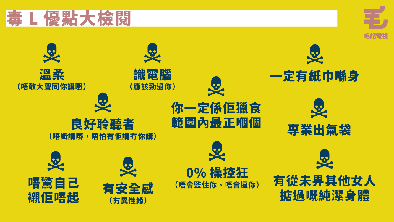 好彩,最近終於有囡囡發現......其實同毒L拍拖都好正㗎!嗚嗚,巧感動呀,終於有人識欣賞毒L嘅內在美喇!