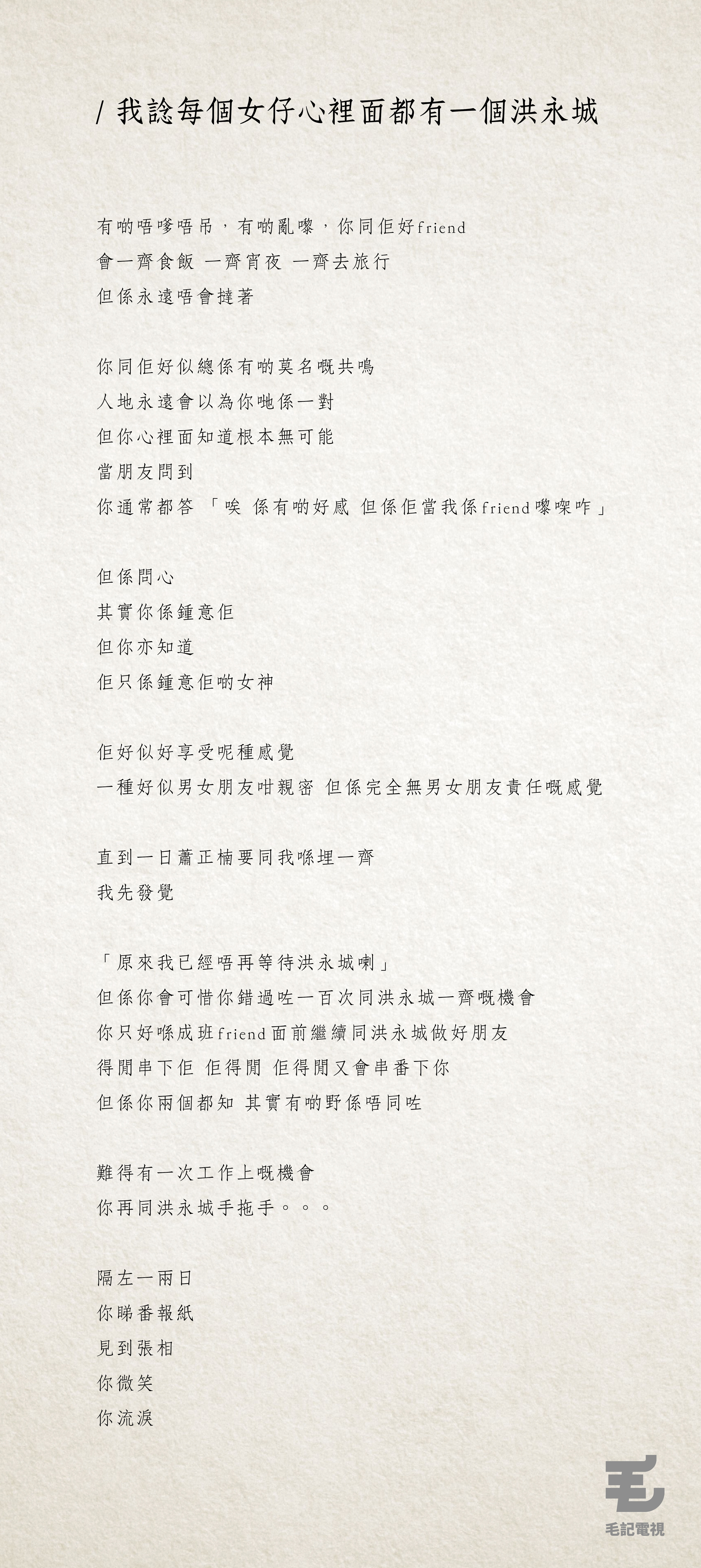 今日毛毛見到一張令人無限唏噓嘅相,相入面係翠如bb同埋洪永城。有一個問題我都問咗個天好多年喇,到底點解佢哋兩個咁襯都唔喺埋一齊㗎?!點解呀??! 呢張登對到爆炸嘅拖手相震撼咗萬千網民嘅心靈,有位高登巴打都為佢哋寫咗一篇潮文懷念佢哋呢份未有過的愛情。 其實佢哋唔係第一次一齊行紅地氈,而洪永城上年就咁講。 不過毛毛覺得,翠如bb可能其實係咁諗。 或者喺另一個平行時空入面,佢哋兩個唔止喺紅地氈上面拖手。 資料來源:高登討論區/melberry、明報