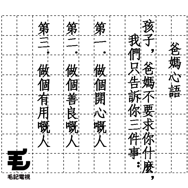 最近網上瘋傳一張叫做「媽媽心語」嘅便條,毛毛一睇第一行:「媽媽不要求你什麼」,已經覺得好奇怪,而家邊有家長唔望子成龍,想個小朋友三歲識串 astronaut、十歲鋼琴八級、廿歲識揸飛機㗎?