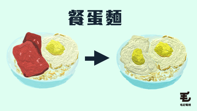 最簡單最唔使用腦就嗌到嘅餐蛋麵都唔食得!食茶記常餐通常有腸仔、火腿、餐肉同煎蛋畀你揀兩個餸,而家乜都唔使揀喇,食煎蛋拼煎蛋麵啦。