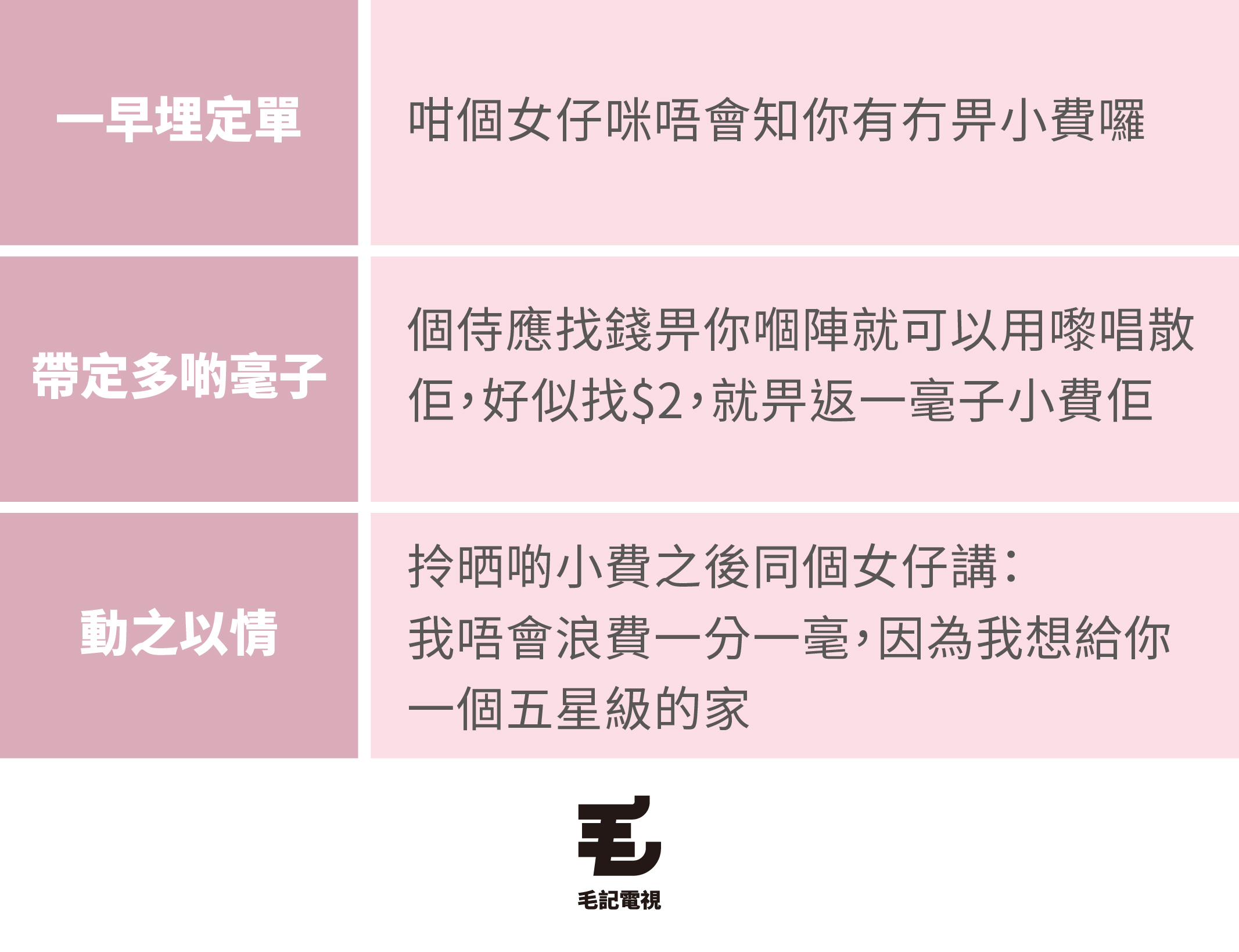 絲打心諗唔係下化,一兩蚊小費都慳,好cheap囉!依毛毛豬愚見,反正都已經用咗咁多錢喺個女仔身上咯,唔爭在嗰一兩蚊啦!不過如果真係想找錢拎返晒啲錢呢,都有啲不失霸氣嘅方法嘅,見係你,過幾招畀你啦!
