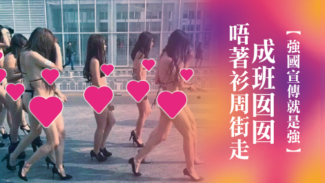 今日喺北京又有成班著住三點式嘅囡囡行嚟行去喇!強國呢排搞咩呀?係咁出裸體攻擊,咁搞法毛毛做嘢會專心唔到㗎喎!