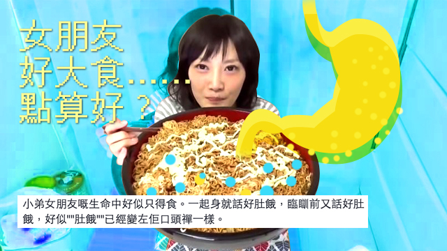 係男人都知道「有得食唔食,罪大惡極」呢個道理啦,咩原來女人都識呢個道理㗎!有網民就話自己個女朋友好大食,成日都話肚餓,肚餓就好似變咗佢嘅口頭禪咁喎......喂,其實佢係咪暗示緊第二啲嘢咋?毛毛講緊佢暗示緊你窮、畀唔到飽飯佢食呀......