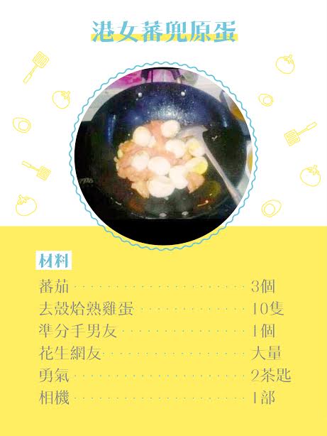 顧名思義,呢味菜係名符其實嘅分仔料理,如果你同男朋友感情降溫諗緊分手,但又怕一時做錯決定,煮佢就最啱。如果佢真心愛你,佢會覺得你肯為佢下廚非常窩心;如果佢已經唔中意你,佢一定會放上網等大家公審你,再搭單問句係咪應該分手保命。所以話,有名你叫,呢個菜真係蕃兜原蛋兩相宜,我講緊感情。