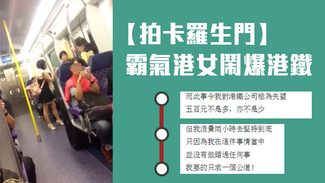 冇拍卡坐頭等就梗係要罰錢啦,不過個港女就堅持自己有拍卡,仲話四個港鐵職員圍佢一個女仔,公平咩!佢仲出動埋女仔最犀利嘅武器──眼淚,結果有個男仔見到佢喊,就行過嚟幫佢喇。