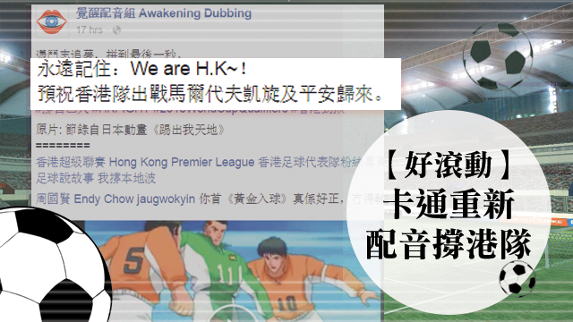 港中足球大戰就到喇!香港人梗係要撐返自己人啦!撐港隊嘅方法有好多種,好似呢班熱血配音員咁,佢哋就幫卡通片《踢出我天地 》重新配音,用嚟同港隊打氣呀!