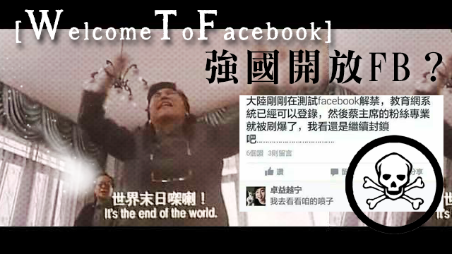蔡英文見到自己咁受強國人歡迎,都喺FB post咗篇歡迎佢哋嘅說話。毛毛都好想同班強國人講句WTF,Welcome to Facebook呀!不過唔知佢哋聽唔聽得明呢?