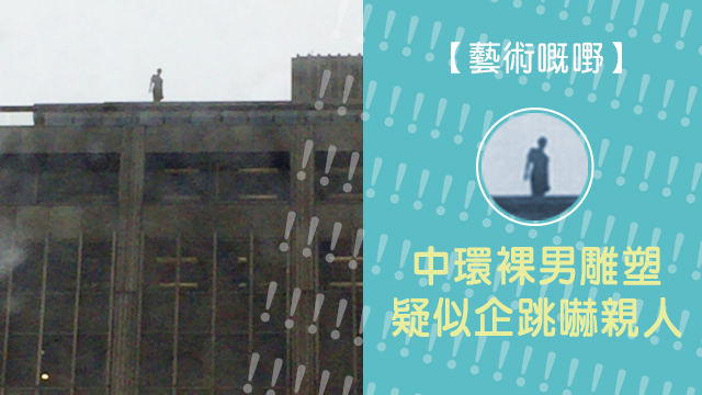 躍下來~跳出去~~一返到office就見到對面天台有個企到咁出嘅人影,嚇到中環一班打工仔個心離一離。報警報足兩次先知道企喺度嘅只係個雕塑,呢一切都係藝術。