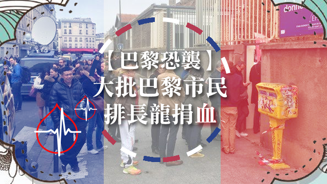 巴黎上星期五晚發生大規模恐襲,有6個地方遭受攻擊,造成嚴重傷亡,但巴黎嘅市民並冇只係匿埋喺屋企,反而無懼危險,自發去捐血希望幫到失血嘅人,令到捐血站出面出現長長嘅人龍。