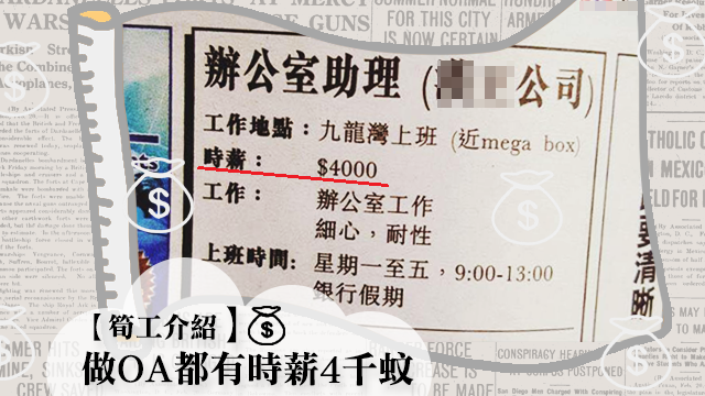 嘩嘩嘩,估唔到而家做OA,即係office assistant辦公室助理都有成4千蚊一粒鐘!比起而家最低工資32個半,足足多成百幾倍呀!如果我剩係返一日都已經有萬六蚊,返夠一個月咪有成幾十萬,到時真係去完一轉日本返嚟都仲有錢剩做上樓基金喎。不過最衰佢剩係返得4個鐘,毛毛想賺多啲為公司貢獻多啲都唔得囉。