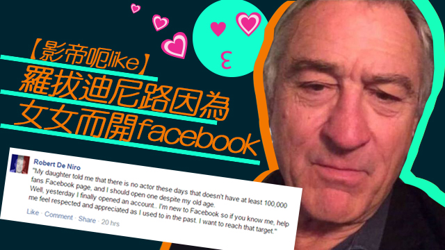 而家最值錢係咩?唔係錢、唔係樓,係like同share呀!連金像獎影帝羅拔迪尼路都睇中咗呢個商機無限嘅機會(好似係),啱啱開咗facebook page要呃人like呀!