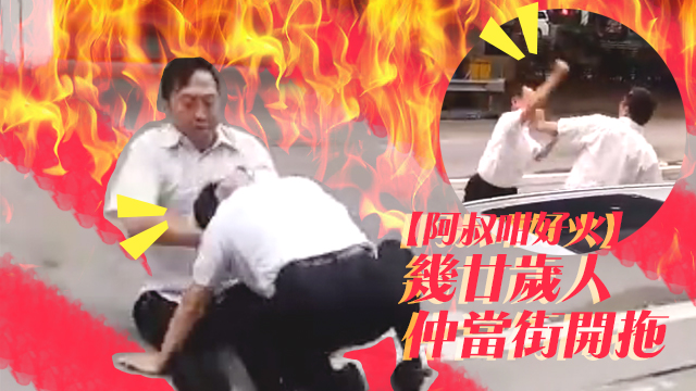 唉,你打人已經唔啱㗎啦,你做咩仲要撳住人哋個頭喎,仲要大街大巷咁樣樣......你又係唔抵幫嘅,毛毛都冇眼睇喇!不過好彩,呢兩位阿叔打打下都有個熱心市民出嚟勸交,睇下~佢哋攬頭攬頸咁,其實都唔知幾fd就真!