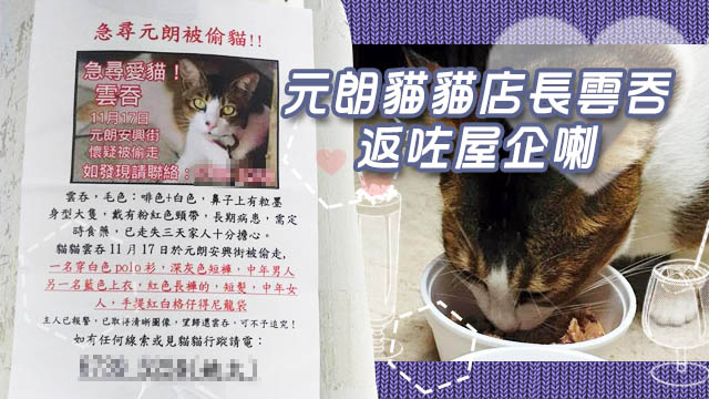 好yeah!元朗寵物用品店嘅貓貓店長雲吞終於搵返喇!