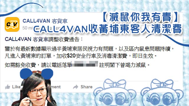 細細個老師都有教啦,老鼠會傳播疾病,而家仲好似進化到會影響視力?,所以有貨VAN公司就話要收入黃埔東客人$20安全行車同消毒清潔費呀!