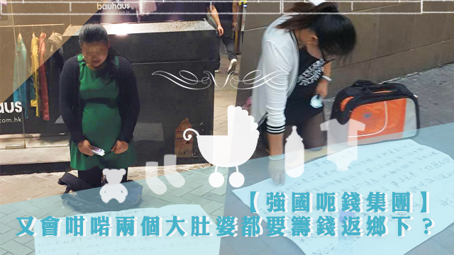 最近有網民喺旺角新世紀下面間化妝品店見到個大肚婆跪咗喺地下,前面張大字報就寫住「一个孕妇的无奈」,話自己畀老公呃落嚟香港生仔,但個衰佬就同第個女人走咗佬,可憐嘅自己冇晒錢唯有跪喺度乞求好心人畀錢佢返鄉下乜乜乜咁喎。
