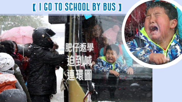 (肥仔心諗:咁大雪已經唔係好想返學㗎啦,而家仲要我迫巴士,歡樂滿東華咩家陣!嗱你哋咪再上車喇,我喊畀你哋睇㗎嗱!)