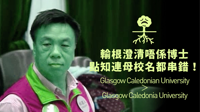 唉,點知最近佢發聲明澄清自己只係雙碩士,唔係博士嗰陣,就連自己都間大學個名都寫錯呀,佢竟然將「Glasgow Caledonian University」寫錯咗做「Glasgow Caledonia University」......