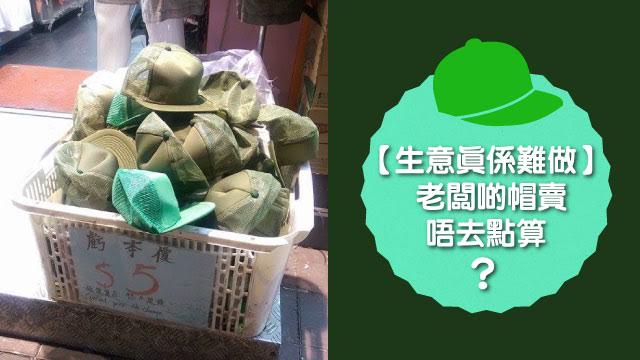 家陣經濟唔好呀,而家好多老闆都話生意要蝕住嚟做半賣半送咁款,生意難做真係見到都心酸。 好似上面呢個老闆已經要大減價,要忍痛平咁多真係好慘。 估唔到呢個老闆仲慘,呢啲優質靚帽都係賣五蚊頂咋陰公,毛毛估老細一定都好苦腦唔知點解冇人買喇。 聽關公話啦,綠帽之嘛,咁抵咪買返頂嚟戴下囉~