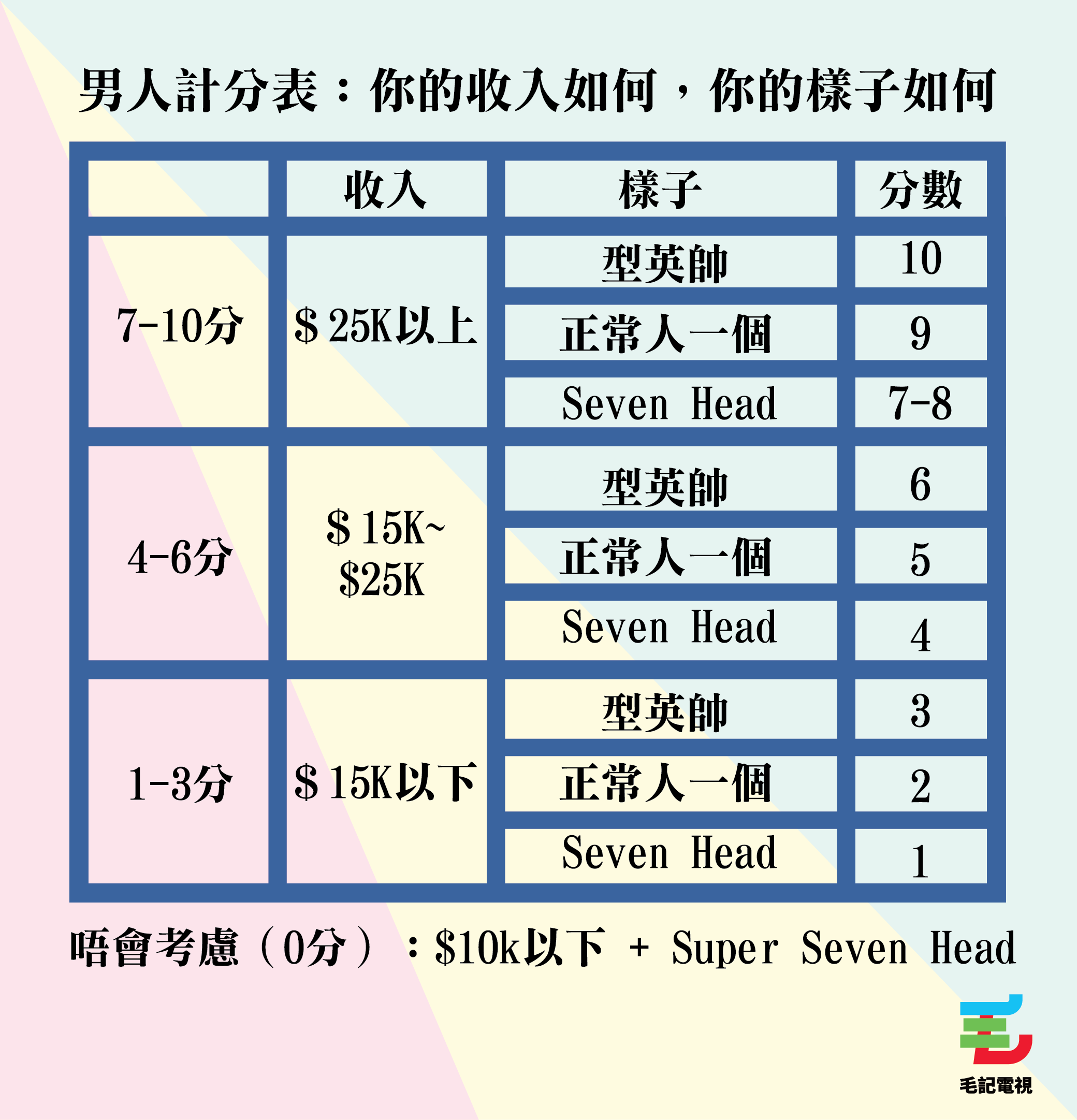 喺呢個連幼稚園細路要追面試分數,小學雞要追TSA分數,中學牛要追DSE分數嘅年代,講男人,梗係都要用分數嚟評價啦~