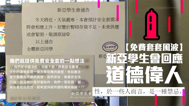 噚日新亞學生會一張關於套套供應緊張嘅通告喺網上瘋傳,毛毛真係好葡萄新亞嘅同學仔呀,有咁貼心嘅服務~