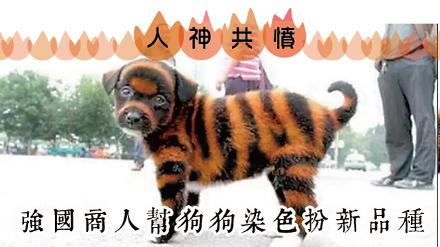 喂,你當毛毛係鄭智定白痴呀?好明顯呢隻就係一隻染咗色嘅唐狗仔啦!Ok fine,毛毛即管上網search下,果然所謂嘅「虎皮狗」就係啲畀強國奸商染咗色嘅狗,仲要好耐之前就已經有?!