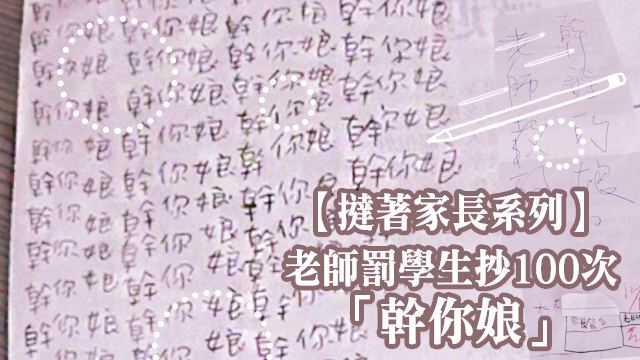 雖然個小學雞係抵罰,但你罰人哋抄啲咁嘅說話,你叫人哋阿媽情何以堪啫,抄下課文咪算~唉,最後咪搞到人哋阿媽唔肯簽名,仲喺張罰抄度寫「老師教的!幹誰的娘。」囉......